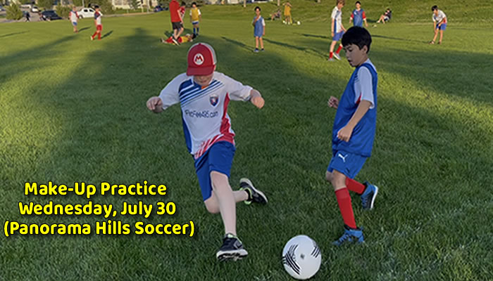 Today’s soccer session – Wednesday, July 30 – is the official make-up practice for the session that was cancelled on Thursday, July 17 due to weather.