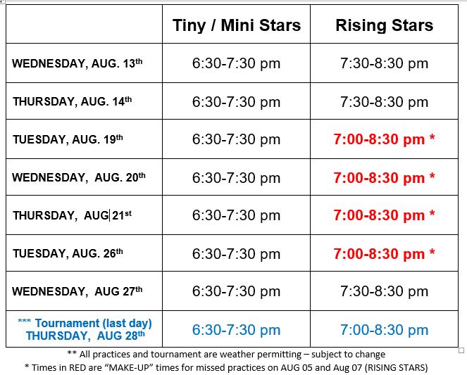 Panorama Hills Soccer /Calgary Soccer Stars * Updated August Practice Schedule