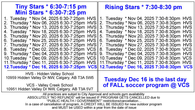 SOCCER SCHEDULE for all age groups is located below… Fee for the FALL SOCCER PROGRAM : $315 $200 + $30 (uniform soccer kit – if needed) / player